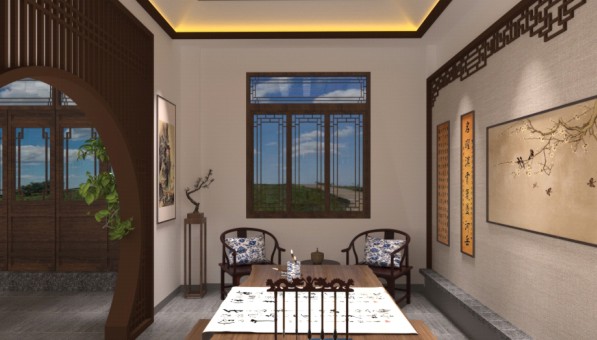 风格主线——展示风格上结合现有建筑风格以新中式为主,做到展示风格统一性。